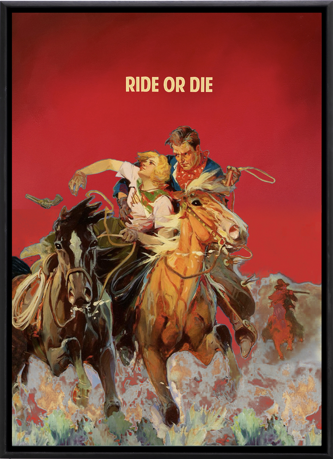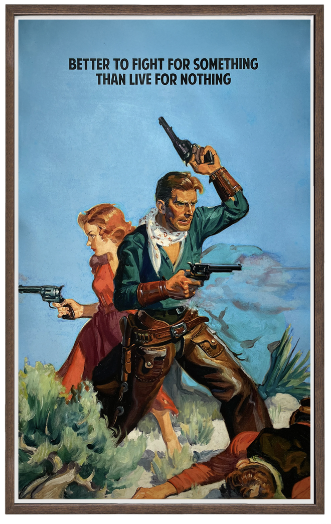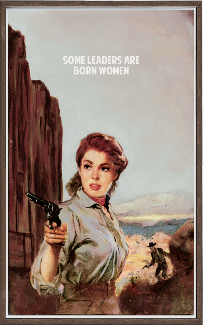 Their style compliments visually bold yet thought-provoking statements with striking depictions of western and pinup-esque illustrations. They capture a tableau of drama which presents the emotion of each work at a bold intensity, ranging from empowering to solemn, all while setting a humorous undertone in their assured nature.